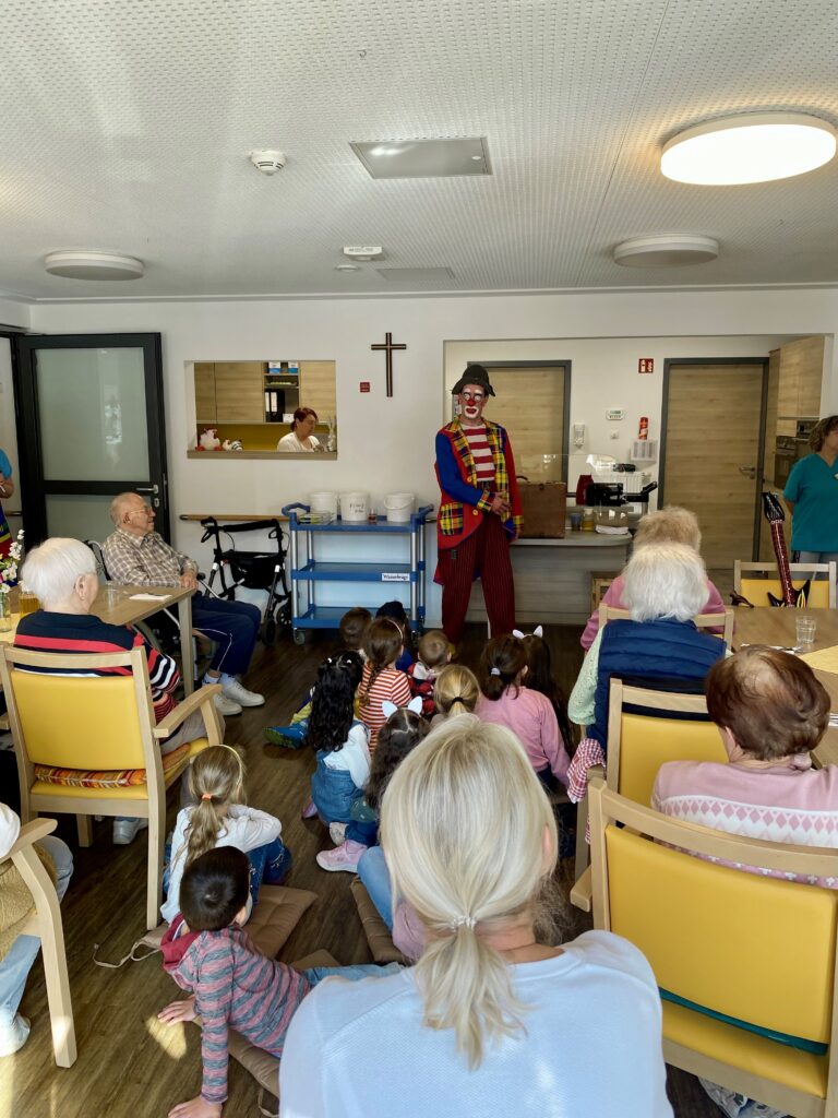 Am Donnerstag bekam das Haus Spessartliebe Besuch von Clown Seppelino und seiner Frau Fridoline. Zu diesem besonderen Auftritt durften wir die Schlaufüchse des Kindergarten St. Martin aus Collenberg begrüßen. Getreu dem Motto: Lachen ist gesund verzauberte Seppelino und seine Partnerin Groß und Klein mit Witz und Charm. Ihre beeindruckenden Zaubertricks, die Tanzeinlagen mit den Bewohnern, sowie mit ihren Späßen versüßten sie allen den Tag. Diesen wundervollen Vormittag haben wir Christiane Romstöck und Sven Griebert mit Ihrer Stiftung ATEV hilft e.G. zu verdanken, die Clown Seppelino für unser Pflegeheim engagierten und die Gage in voller Höhe sponsorten. So ein Clownbesuch steigert die Lebensqualität, weckt die Neugier, Kreativität und Lebensfreude. Dankeschön an alle, dies diesen Tag so herzlich bereicherten.